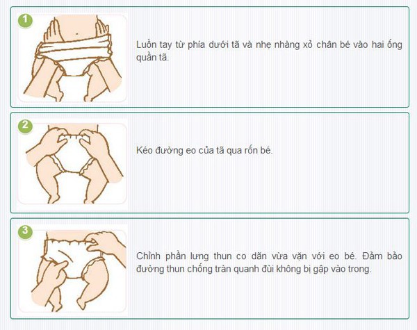 Bố Mẹ tham khảo hình hướng dẫn sau để thay tã cho bé